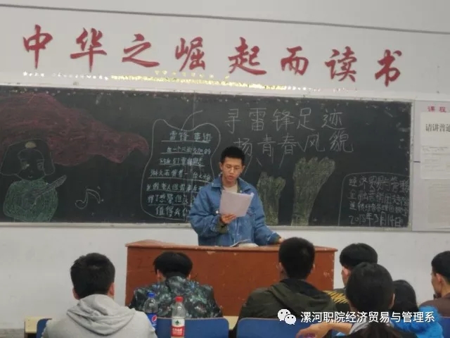 我们双汇学院各班集体在3月也开展了“寻雷锋足迹,扬青春风貌”的团课主题活动。下面由小管为大家介绍各班开展活动的情况。