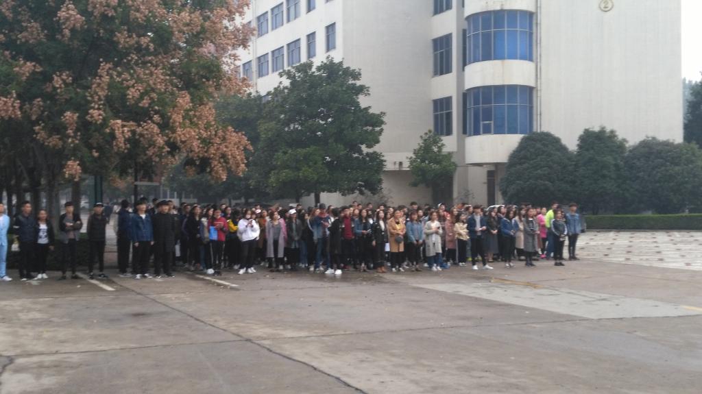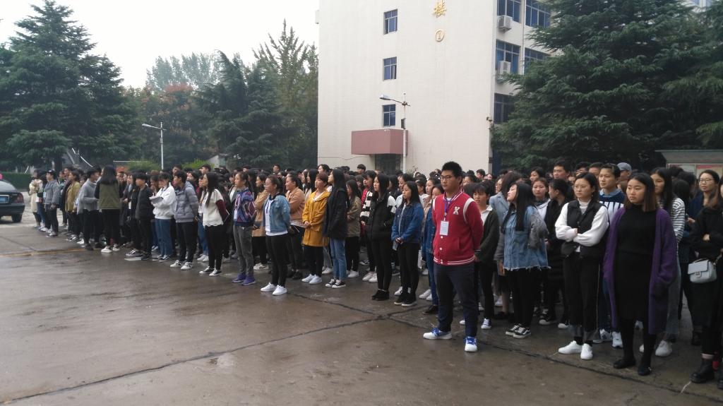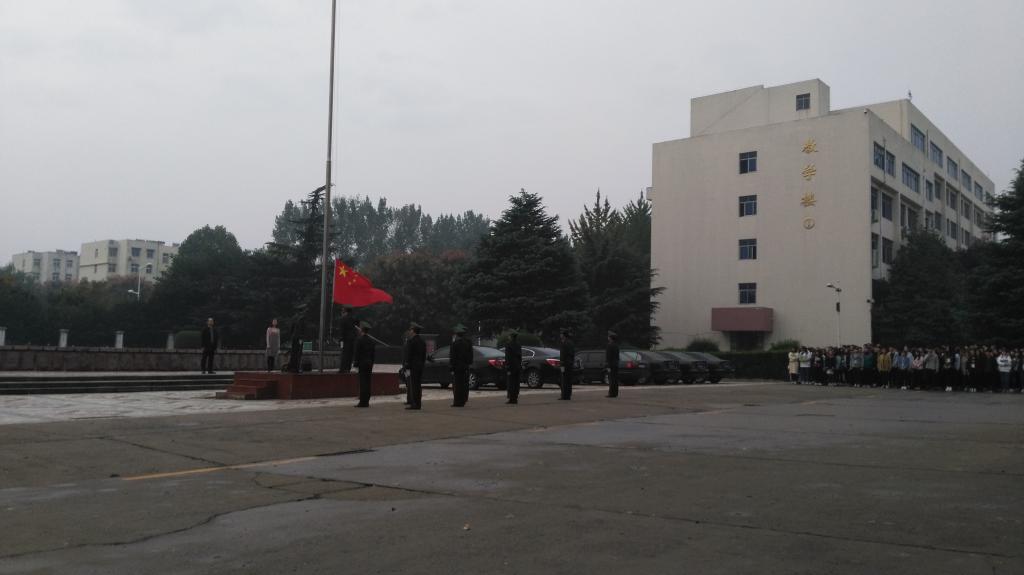 2017年10月16日上午7点,经管系全体师生在行政楼前举行升国旗仪式。