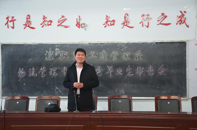 2014年12月22日下午,工商管理系在学院就业报告厅举办了一场优秀毕业生报告会,物流管理专业2007级毕业生张业锋为工商管理系2013级和2014级三个班的学生做报告,报告会由物流管理专业教研室主任任平国主持。
