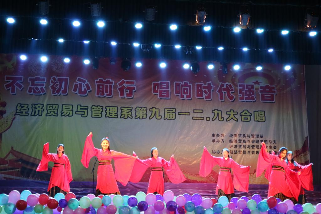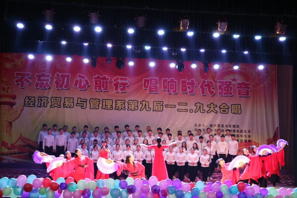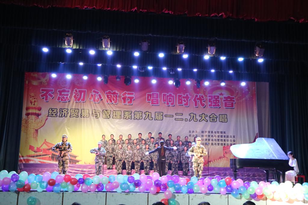 12月6日下午,经济贸易与管理系在院大礼堂举办了第九届“纪念“一二·九运动”大合唱比赛,院领导观看了学生比赛。