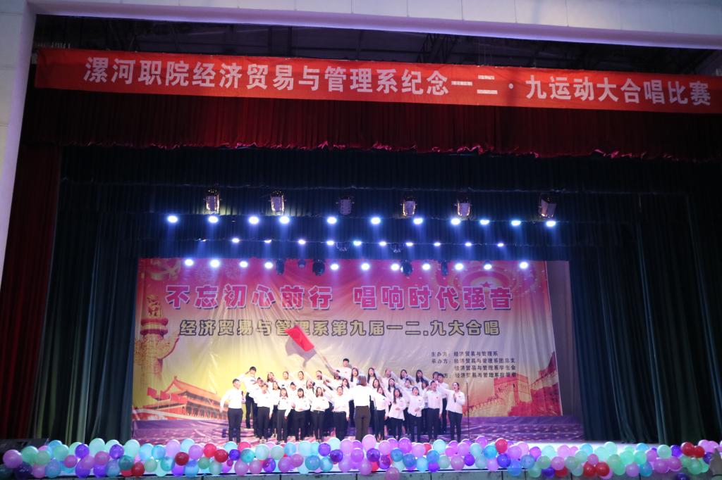 经管系纪念“一二·九运动”合唱比赛已成经管系学生活动的标志性品牌。今年经管系组织了16、17两个年级17个合唱队,全系学生参与其中,在歌声中重温历史,提高学生的责任感和使命感,进一步传承青年学生的爱国主义精神。启发同学们勤奋学习,努力拼搏,不断提高与完善自我,为国家的壮大贡献自己的一份力量。