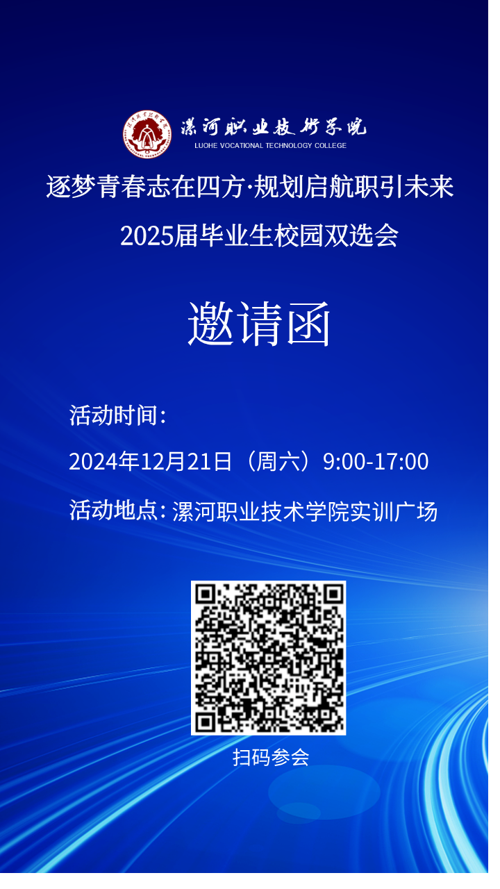 为进一步加强学校与用人单位的交流与合作,搭建毕业生与用人单位双向选择的优质平台,实现校企双赢,我校定于12月21日(周六)举办“逐梦青春志在四方 规划启航职引未来”2025届毕业生校园双选会,诚邀社会各企事业用人单位莅临我校,选拔英才!我们将竭诚为您服务,全力推荐贵单位所需人才。