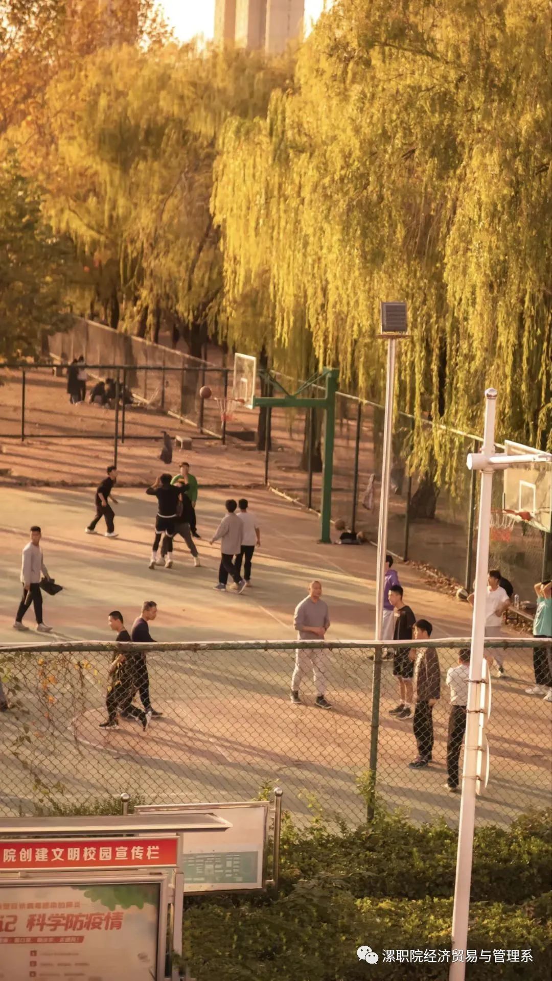 篮球场上的同学们洒下的汗水,上课同学们忙碌的步伐,下课的背影,都彰显着我们热烈的青春!