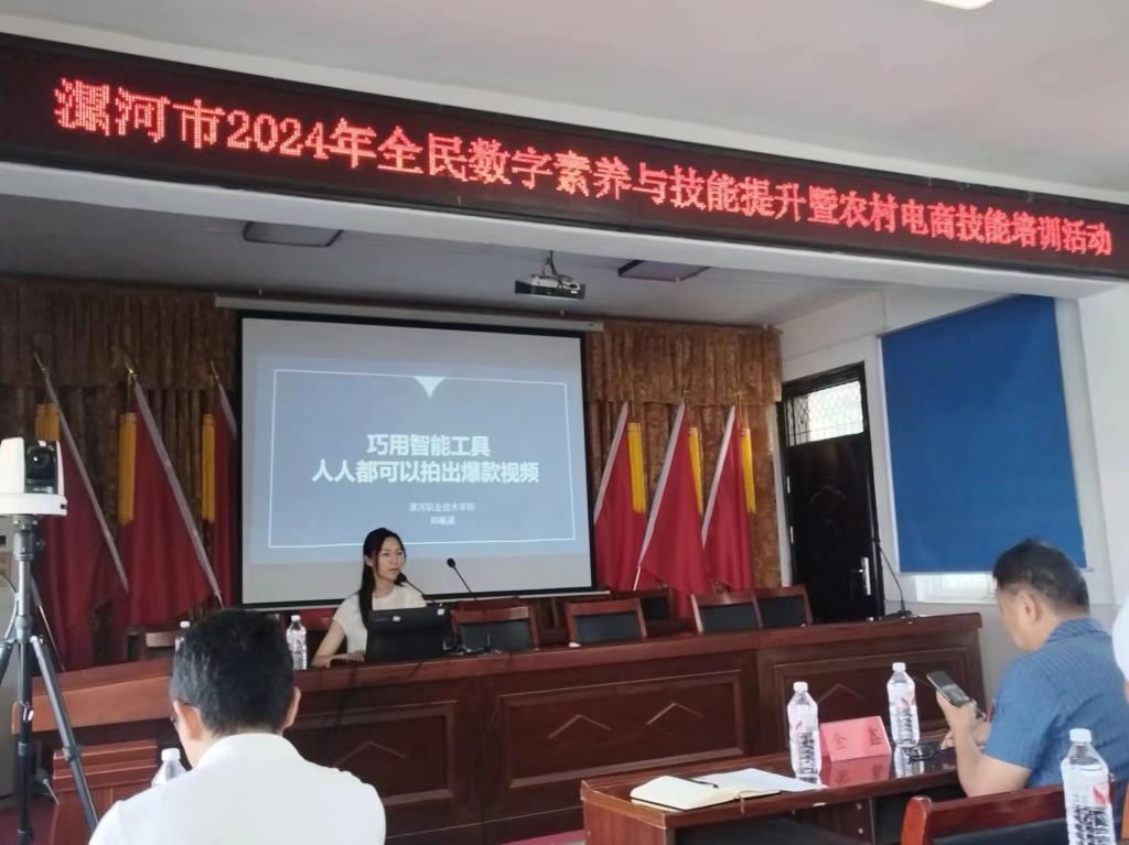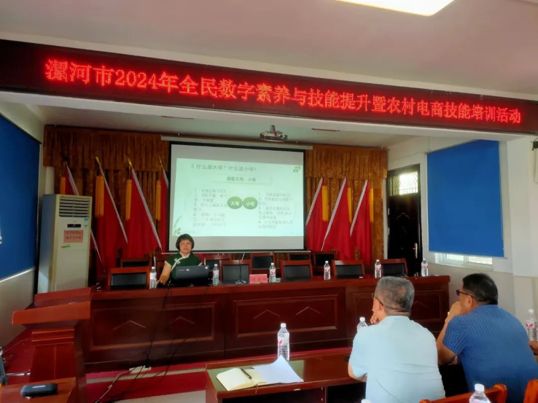 本次活动在漯河市全民数字素养与技能提升月组委会统一指导下,由市委网信办主办,市农业农村局、市妇联、舞阳县委宣传部协办,sunbet官网、舞阳县莲花镇人民政府承办。活动旨在通过“数字赋能 全民共享”进一步提升广大农民朋友的数字素养与技能,从而帮助广大农民朋友更加便捷地获取农业技术知识、市场行情信息,更好地参与市场竞争,实现增收致富。启动仪式结束后,同步开展了农村电商技能培训和乡村数字素养志愿者服务活动。sunbet官网工商管理系教师李君芳、郑馥源围绕农村电商运营模式、零粉丝电商直播技巧、AI赋能农村电商直播等电商直播技巧进行了讲解。此次培训采取线上线下相结合的方式进行,来自全市农业农村相关从业人员近2000人次参加了线上线下培训,许多线下的学员学习专注,认真做笔记,培训活动取得了圆满成功。