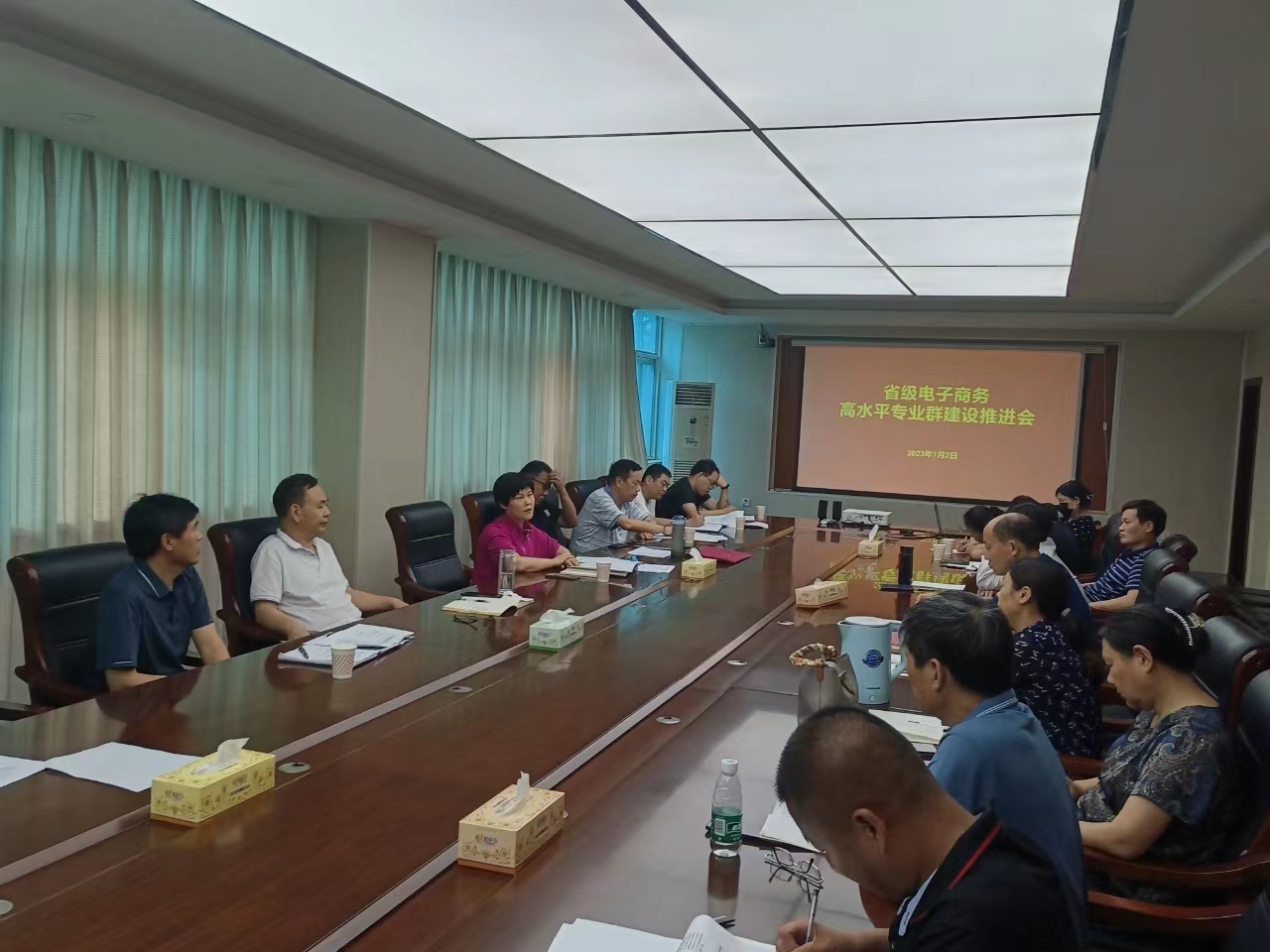 2023年7月2日下午,我校在学校行政楼二楼会议室举办了省级电子商务高水平专业群建设推进会。学校副校长朱晓红、教务处长赵冬梅、工商管理系班子成员和部分教师及学校相关系部的负责人参加了会议,会议由工商管理系主任主持。