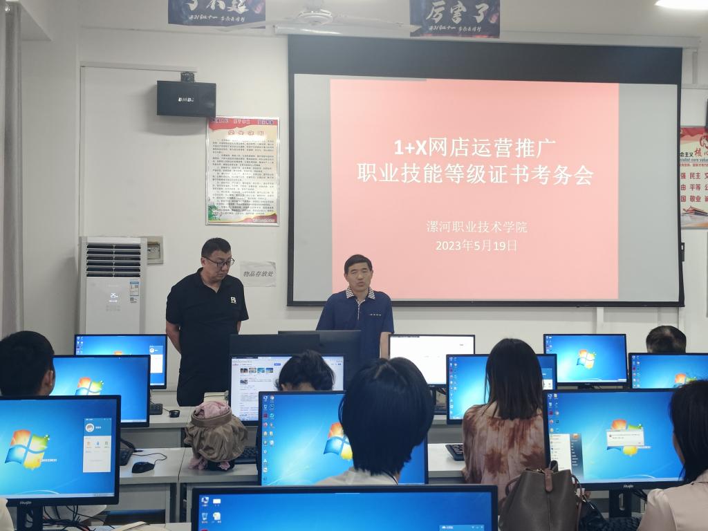 为了提高学生的职业技能水平和职业竞争能力,工商管理系在2021年成功申报了1+X网店运营职业技能等级证书考点,2022年因疫情原因没有组织考试。为了做好此次考试工作,从2023年四月初开始,工商管理系电子商务和跨境电子商务两个教研室在荣长玲、娄艺等八名老师的带领下对120名学生进行了考前培训,最终有90名学生通过考务系统报名参加考试。5月13号下午,教学副主任李子剑组织所有考务人员召开了启动考试会,对人员分工、考试物品准备、考务资料的整理制作、机房考场确定、网络保障等工作进行了安排。5月18号下午,按照正式考试的要求高规格的组织了一次模拟考试。5月19号下午组织了考务会,系领导陈思顺、安国彦分别对强调了本次考试的重要性和意义,希望大家共同配合组织好本次考试,最终在5月20号上午顺利完成了本次考试。本次考试工作也得到了学校现代教育技术中心、保卫处和医务室的大力支持。