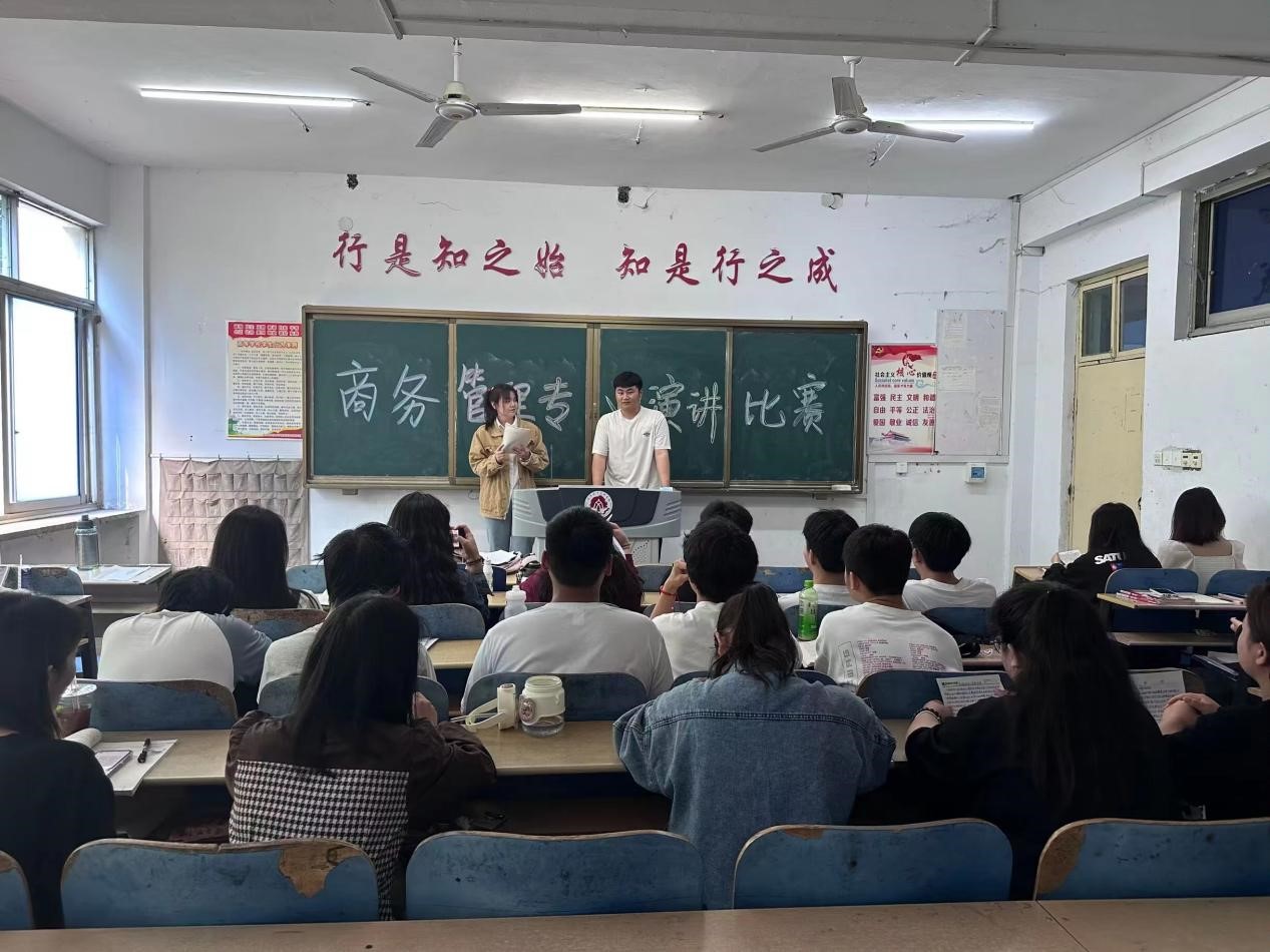 为了展现大学生的飞扬个性与青春活力,为大学生提供一个抒发情感、展现自我的舞台,锻炼语言表达能力,提升自身文化涵养,在比赛中找到努力方向,走好人生的每一步,工商管理系商务管理专业于2023年4月20日上午,在sunbet官网1号教学楼214教室开展演讲比赛,2021级商务管理班全体同学参加此次演讲。