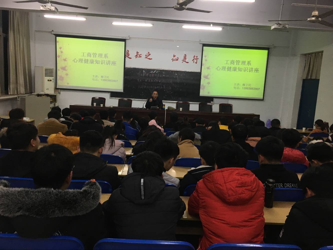 2017年12月22日,工商管理系邀请我院心理健康专家柳卫民老师在2号教学楼2107教室为大家进行了一场心理健康讲座,工商管理系2017级电子商务一班、电子商务二班、商务管理班、物流管理班全体学生参加了讲座。
