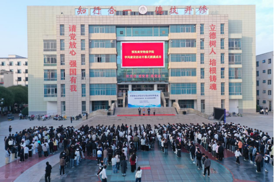 11月14日下午,sunbet官网在实训广场举行“学风建设月活动开幕式”。sunbet官网党总支书记寇槐花、院长吕亚博、党总支副书记赵秋涛、副院长刘智和全体师生参加活动。