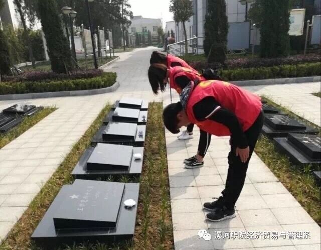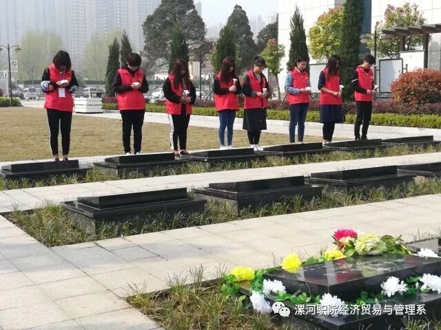 3月31日清晨,我系青年志愿者们前往漯河烈士陵园进行祭扫。