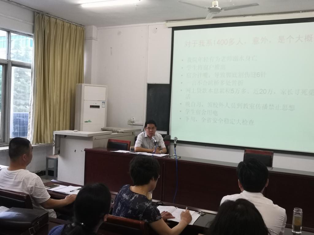 兰涛主任传达了学院安全会议精神,并对系部安全稳定工作做了安排。张改亮书记针对安全稳定工作做了专题讲解。
