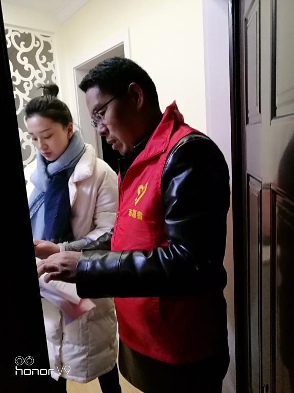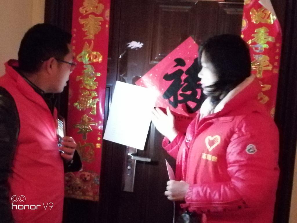 12月6日晚6:30,双汇学院老师到分包社区——建西社区兰乔迪亚小区开展创文入户宣传活动。