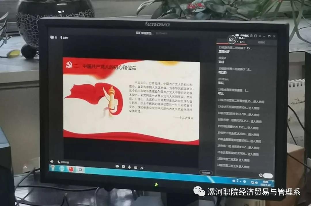 党课上,同学们在线上积极参与,认真学习,时刻以严格的标准要求自己,把为全心全意为人民服务的宗旨谨记于心,争做模范表率。