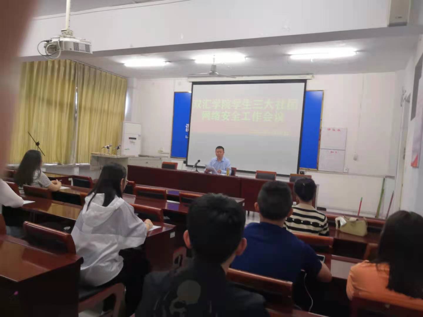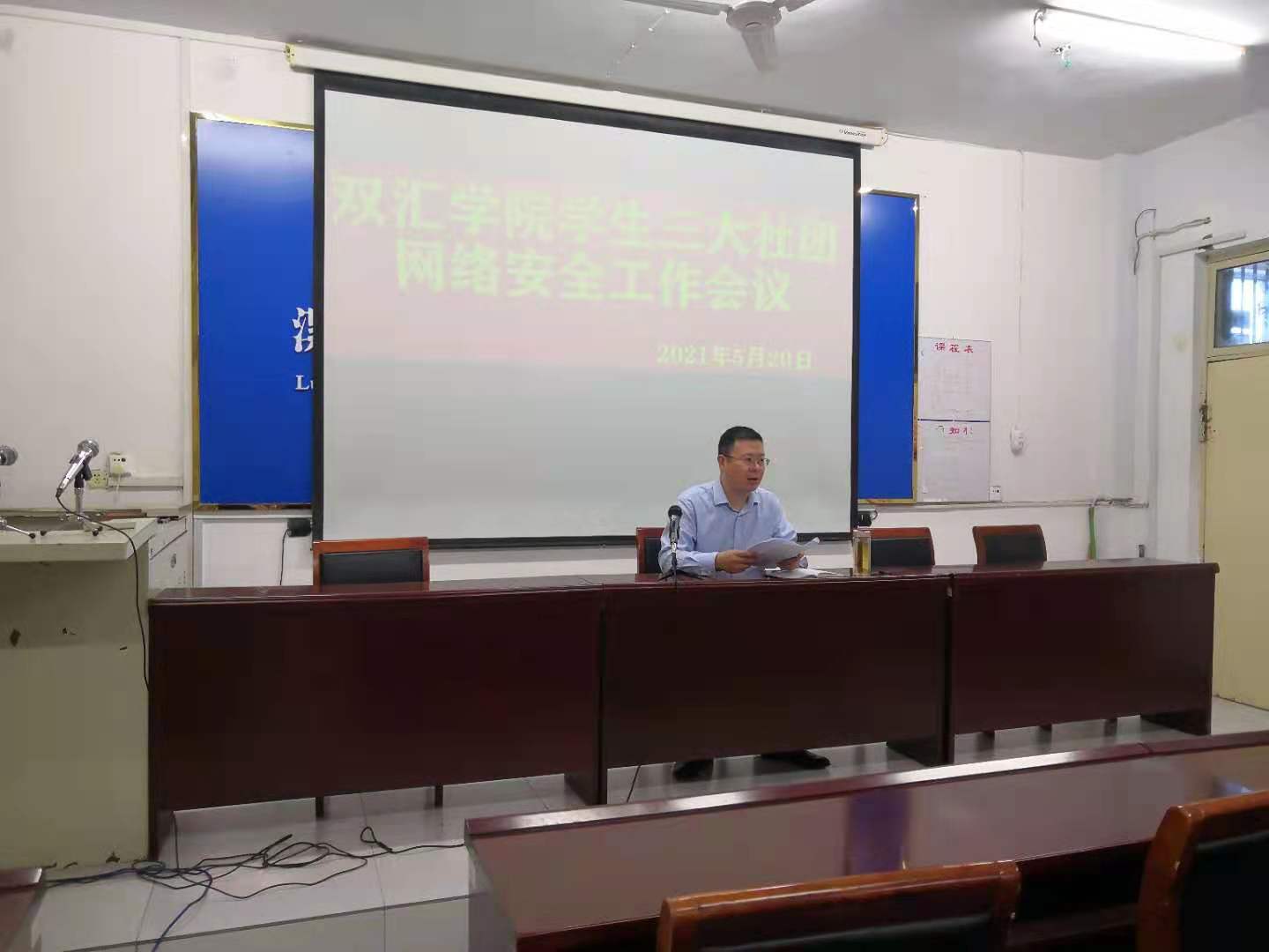 5月20日下午,双汇学院召开了由学生会、宿管委、团总支三大学生社团学生干部及有关人员参加的网络安全工作会议。会议由双汇学院办公室主任王珂琦主持。