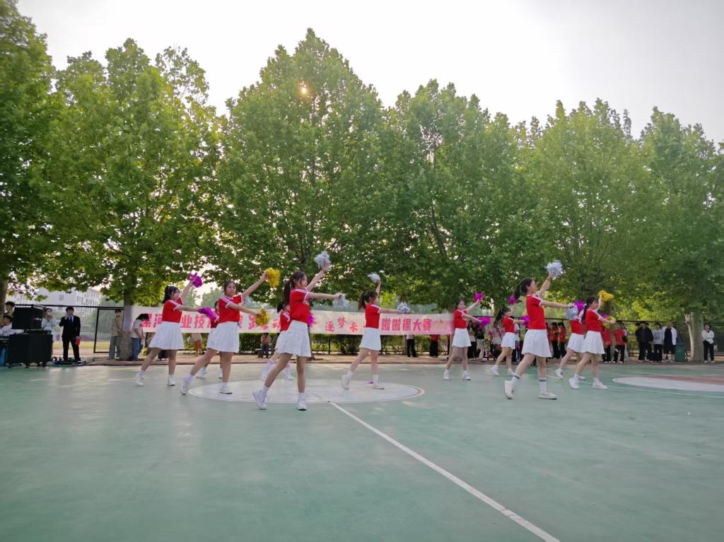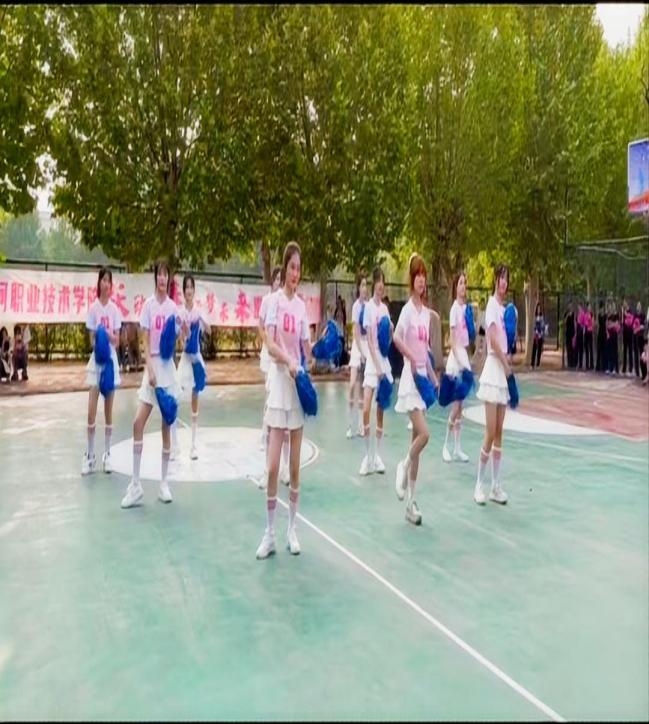 比赛中,我院啦啦操队员身着统一亮眼的服装,踏着动感的节拍,以饱满的热情、整齐的动作和富有创意的编排闪亮登场。队员们活力四射的舞姿、自信洋溢的笑容,完美诠释了 “团结拼搏、超越自我” 的精神风貌。无论是刚劲有力的踢腿,还是轻盈优美的旋转,亦或是默契十足的团体造型,都展现出队员们扎实的功底和对啦啦操运动的热爱,赢得了现场观众的阵阵掌声与欢呼。