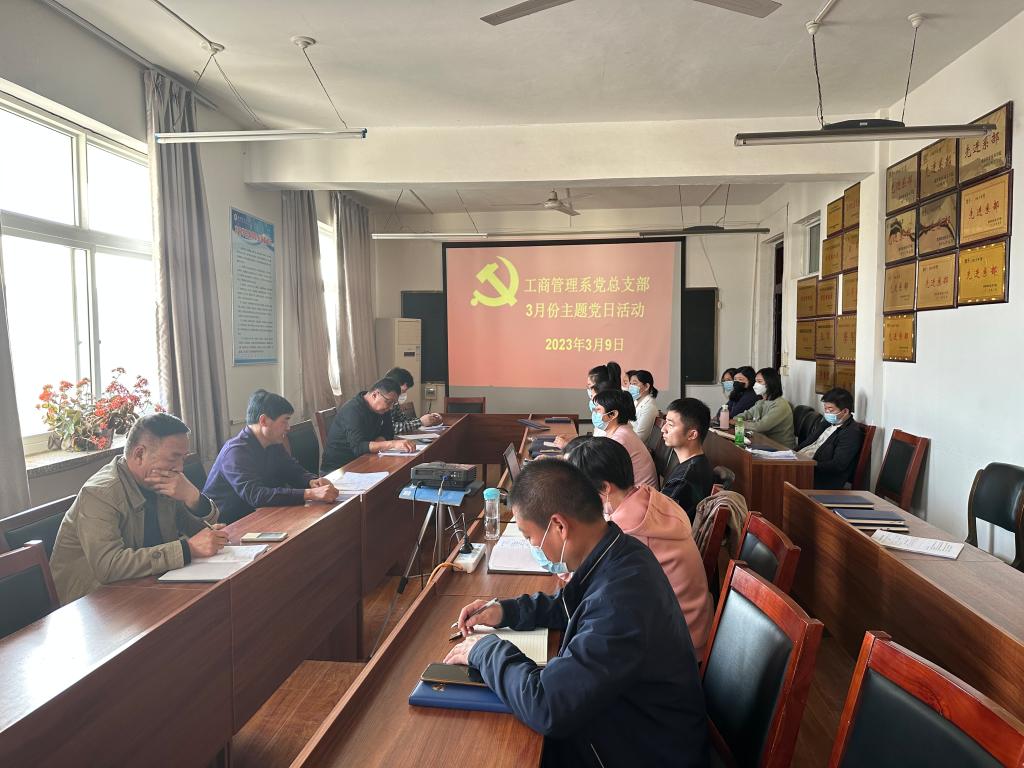 2023年3月9日下午,工商管理系党总支接到通知以后,迅速组织开展3月份主题党日活动。积极学习了习近平总书记对深入开展学雷锋活动作出的重要指示:深刻把握雷锋精神的时代内涵让雷锋精神在新时代绽放更加璀璨的光芒。学习3月1日《求是》杂志发表习近平总书记重要文章《新时代党和人民奋进的必由之路》。学习中央组织部基层党建工作重点任务推进会精神。