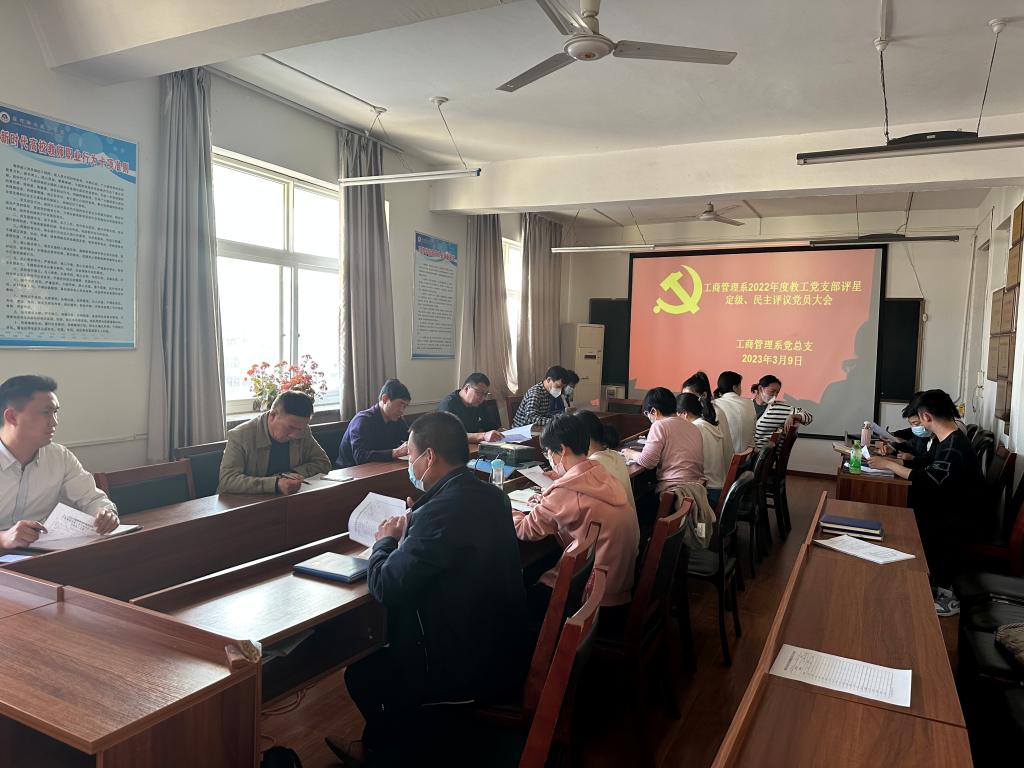 同时,为建立健全党员教育管理长效机制,发挥党员先锋模范作用,鼓励党员通知保持廉洁自律的作风,弘扬社会正气,以饱满的热情和勇于担当的使命感投入一线教学队伍中。工商管理系教工党支部以及工商管理系学生党支部结合上级部门的工作要求,进行了民主评议党员的活动,全体党员结合实际情况,根据考核标准,完成自评。并在系书记的主持下,有序开展了2022年度党支部评星定级活动,开展了以案促改专题组织生活会。会上,领导班子结合案例,对自身在一段时间内出现的思想、工作上的问题进行了深刻反思,认真对照检查,并总结工作经验,提出了未来一段时间内可行的整改措施。
